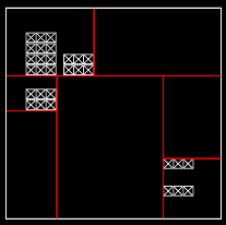 You can check out the actual implementation in the sample ray tracer project. I tried some things to speed up the code: The candidate split plane positions are first stored in a linked list. During this first loop, duplicate positions are eliminated, and the positions are sorted. In a second loop, the left and right voxel primitive counts are calculated for each split plane position. This is where the sorted list comes in handy; as we are walking from left to right, we can tag primitives that are to the left of the current plane, so we can skip them in the next iteration. Even using these tricks the kd-tree compiler is too slow. If someone has a good suggestion to improve this, I would like to hear it. :) The generated tree is quite good however. It can be improved, consider this work in progress: Right now, triangles are not clipped to the parent voxel before their extends are determined. Doing this clipping allows split planes to be situated at the exact position where a triangle leaves a node. This is not a very difficult extension, but it will make the tree compiler even slower. |